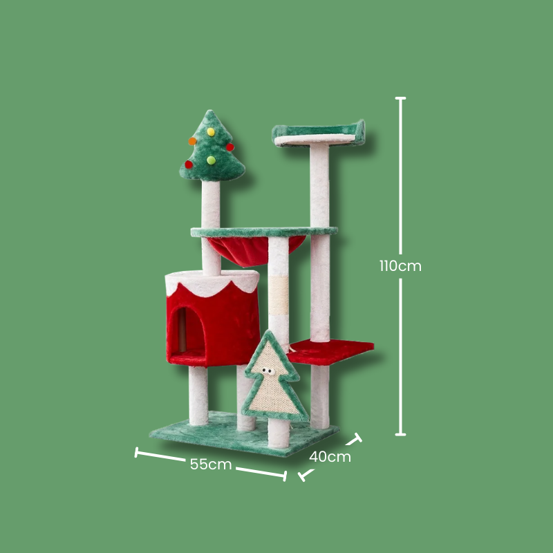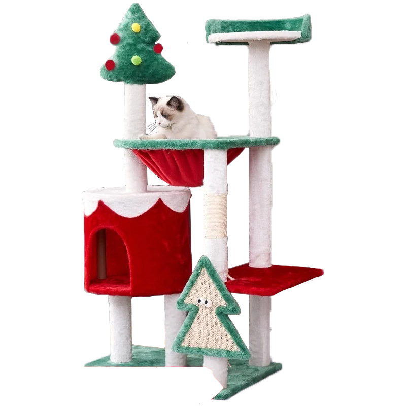 - Design: Christmas-Themed Multi-Level Cat Tree